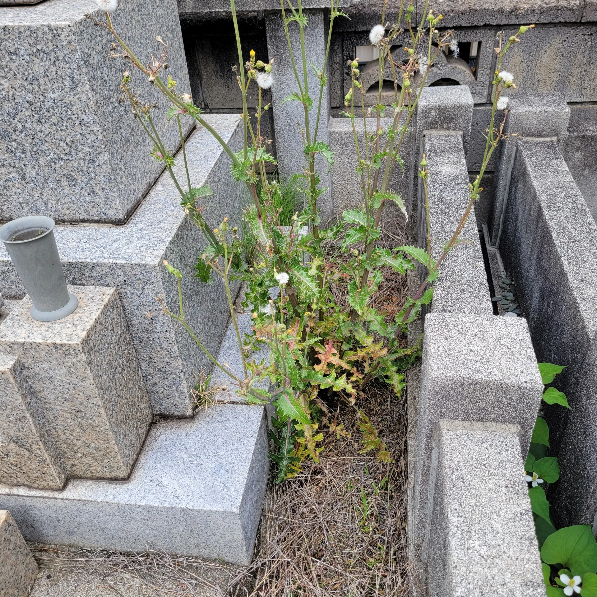 そこで思いつくのが除草剤ですが、お墓の中のご先祖に申し訳ないと言った心理的な理由や、墓石、御影石にも良くないので使用しない方が多いです、もちろん我々もあまりお薦めはできません。