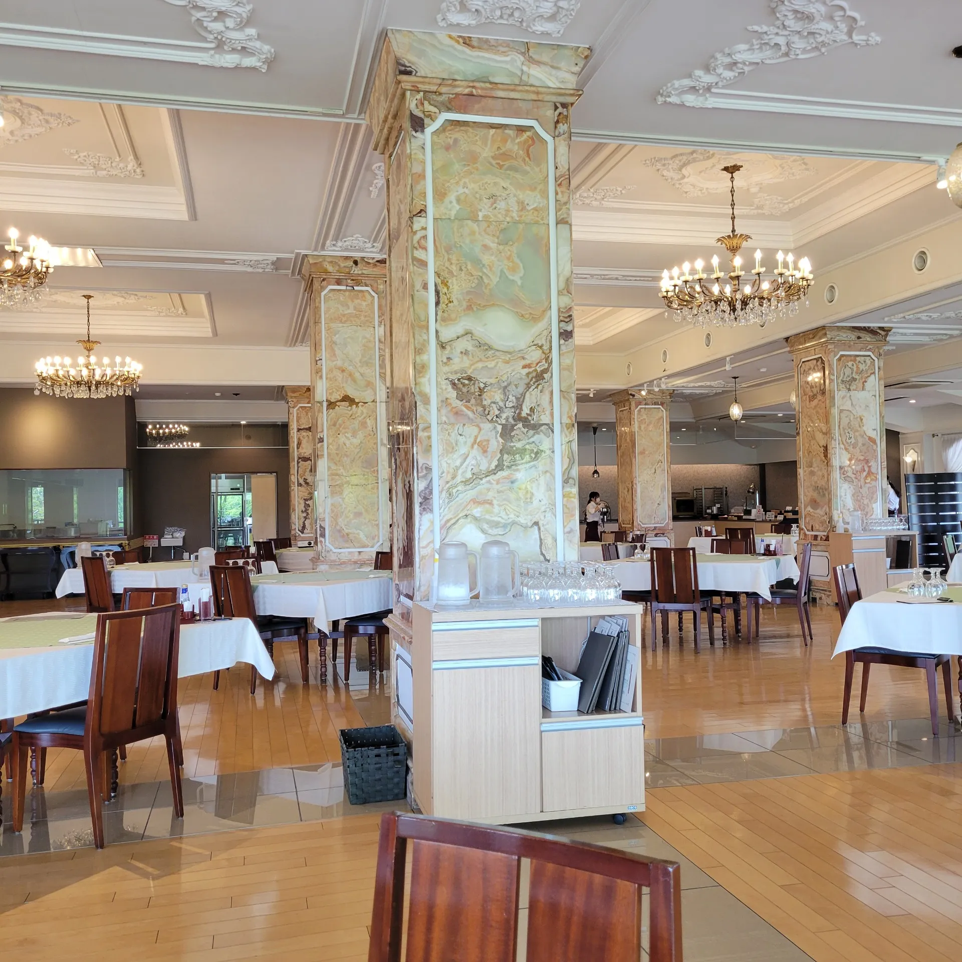 そして、やはりゴルフ場に行っても職業病でついつい興味をもってしまうのは石で、このゴルフ場は建物の内装全てが高級大理石「オニキス」で出来ていて大変興味深かったです。