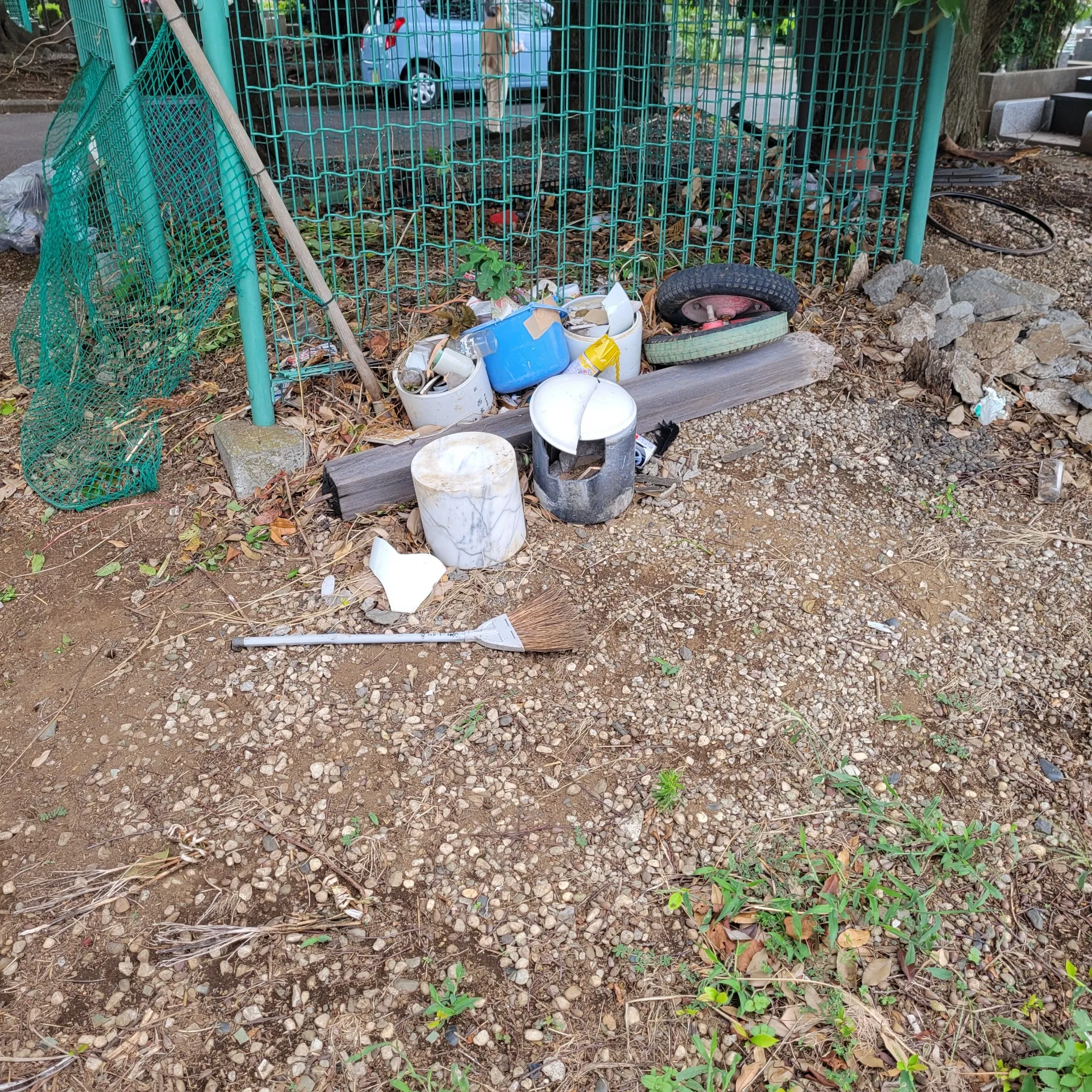 八柱霊園のような公営霊園には枯れ花を持ち帰りせずに棄てても良い規則があり、「枯れ花棄て場」と称された場所があるのですが、そこに棄てた物を管理している東京都が発見したのか柵の外へまとめて出されていました、、