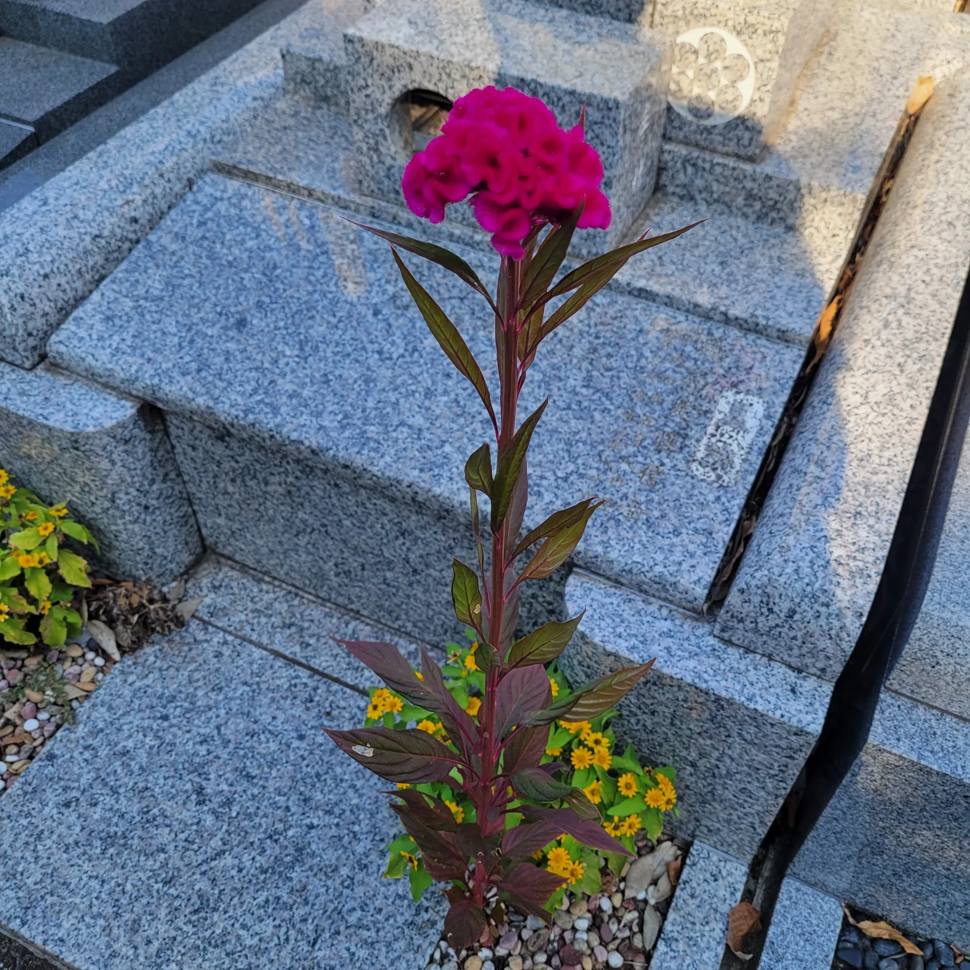 なかなか摘み取るのも抵抗があるようですが、もし墓石、御影石の端にちょこんと咲いているのを見掛けたら是非摘み取って自身のお墓へお供えしてあげて下さい、きっとケイトウもその方が喜びます、墓前向けのお花、墓石、御影石の為のお花は墓地で自分の使命の為に一生懸命自生しているのです、偉いですね!