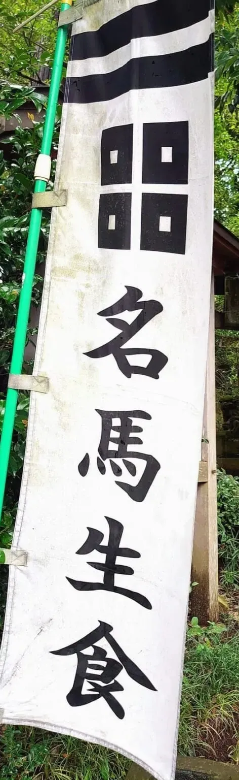 千葉県北西部は昔からおおまかに「東葛」地域(とうかつちいき)と呼ばれ、古来より様々な文化や言い伝えがありますが、柏市や白井市や印西市の神社では画像のようなのぼり旗を良く目にします、『名馬生食』
