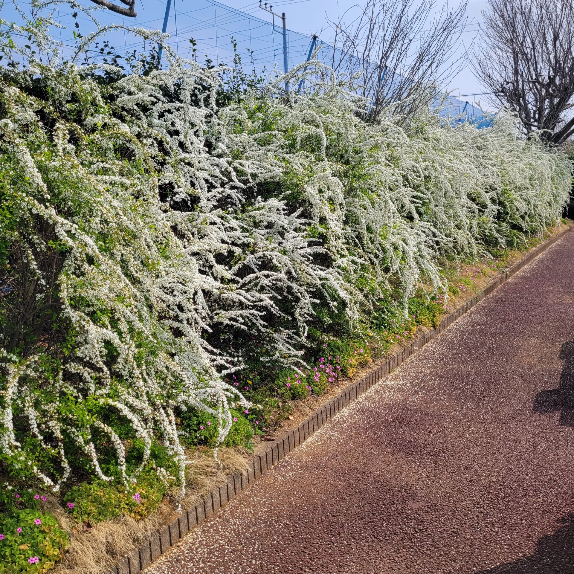 皆様どうしても桜に目が行きがちなのですが、このユキヤナギも大変見事な咲き方で、ソメイヨシノよりも少~しだけ早く満開しますが散るのはソメイヨシノよりも少~し遅く、本当に毎年毎年桜に負けじと頑張っている印象があります、毎年見ているせいか、私個人的にはソメイヨシノももちろんなのですが、なんとなく「ユキヤナギ推し」となってしまっております笑。